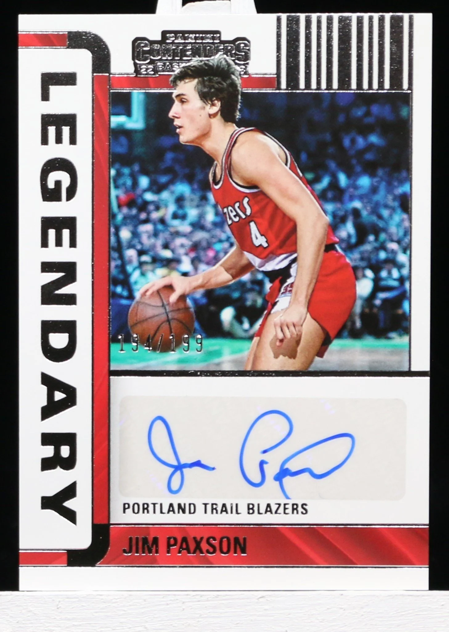 Card Shop › 2022-23 Panini Contenders Jim Paxson Legendary Contenders Autographs #LC-JPX Image 1 of 2 Image 2 of 2 2022-23 Panini Contenders Jim Paxson Legendary Contenders Autographs #LC-JPX $12.00 #194/199This card ships sleeved within a standard top loader. Add To Cart Added! #194/199This card ships sleeved within a standard top loader.