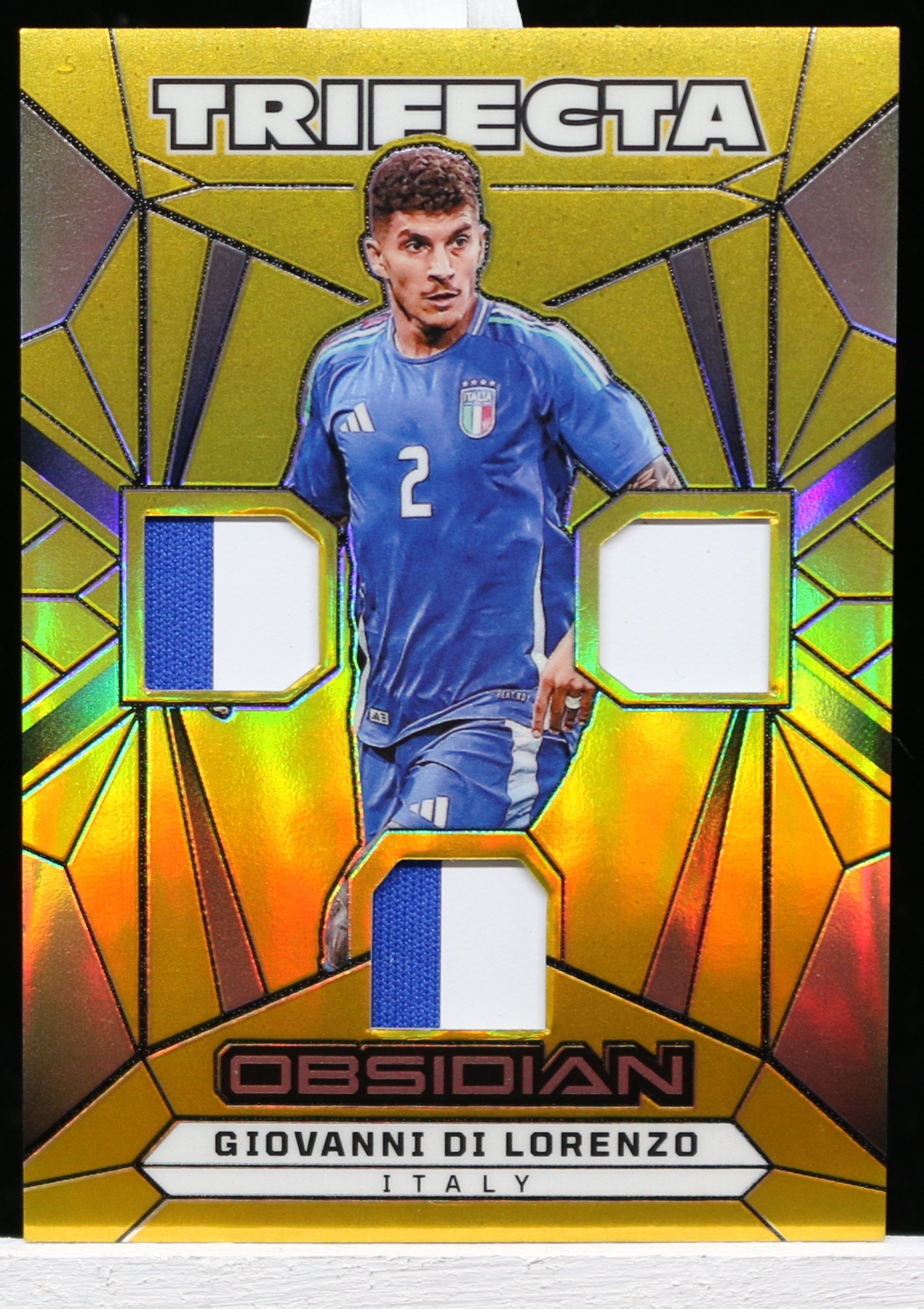 Card Shop › 2024-25 Panini Obsidian Giovanni Di Lorenzo Trifecta Materials #TM-GDL Image 1 of 2 Image 2 of 2 2024-25 Panini Obsidian Giovanni Di Lorenzo Trifecta Materials #TM-GDL $75.00 Electric Etch Gold Flood #02/10This card ships sleeved within a 120pt top loader. Add To Cart Added! Electric Etch Gold Flood #02/10This card ships sleeved within a 120pt top loader.