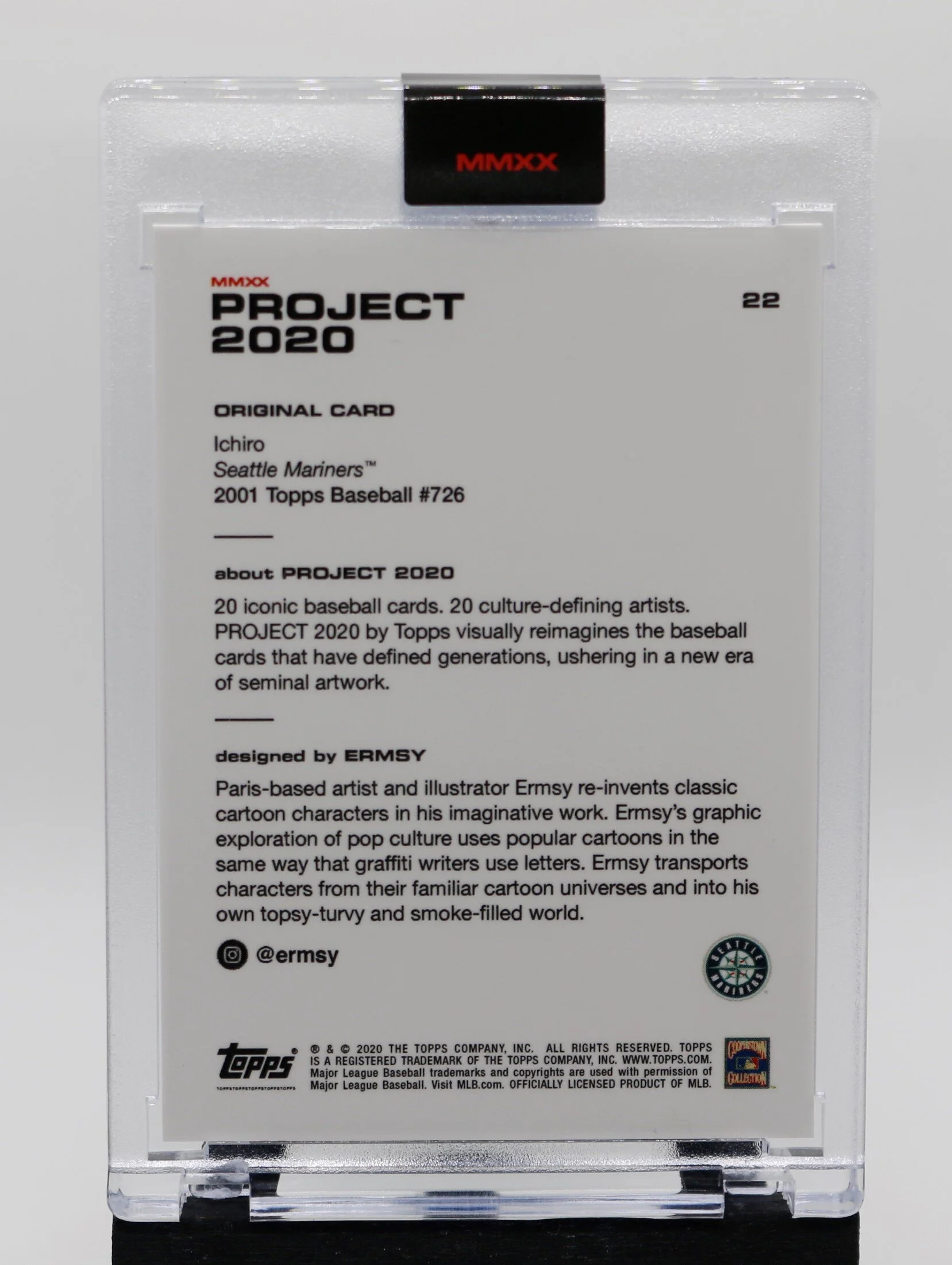 Card Shop › Topps Project 2020 Ichiro by Ermsy #22 Image 1 of 2 Image 2 of 2 Topps Project 2020 Ichiro by Ermsy #22 $175.00 In the style of 2001 Topps RC #726Print run of 1,972Card comes in sealed One Touch with original box included Add To Cart Added! In the style of 2001 Topps RC #726Print run of 1,972Card comes in sealed One Touch with original box included